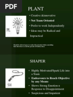 Plant         creative, good imagination, likes to be       Creative,              Might ignore