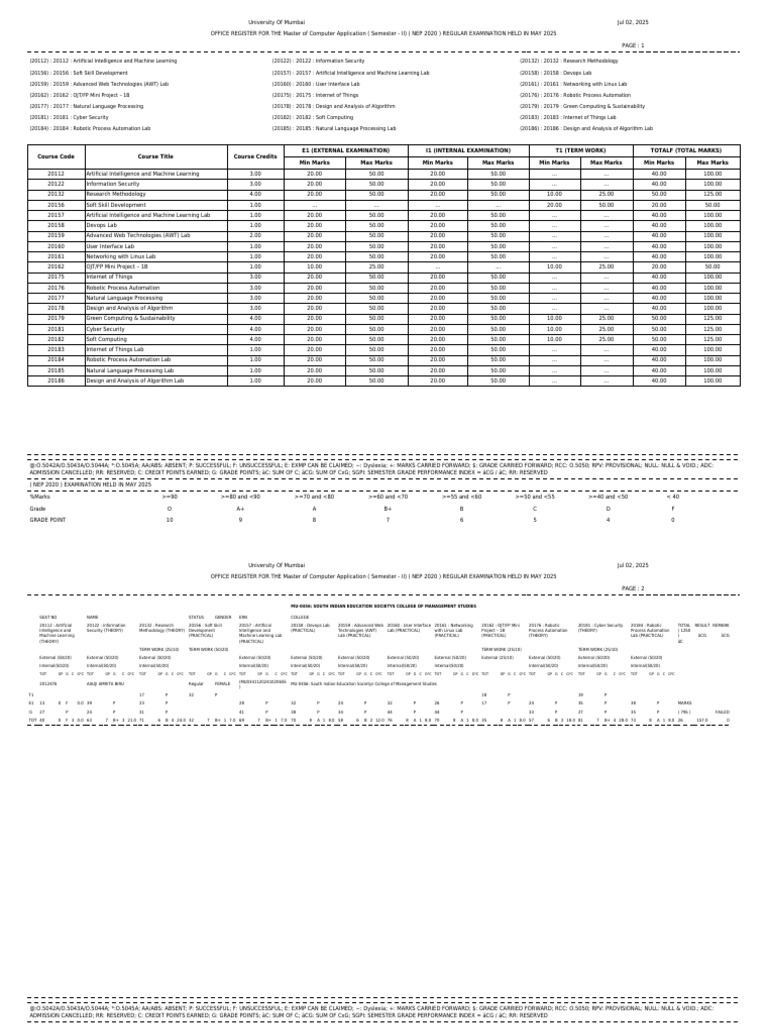 OFFICE REGISTER FOR THE Master of Computer Application ( Semester - II) ( NEP 2020 ) REGULAR EXAMINATION HELD IN MAY 2025