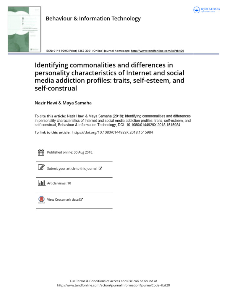 Networking 17 (12): 749–754. Samaha, M., and N. S. Hawi. 2016. “Relationships among