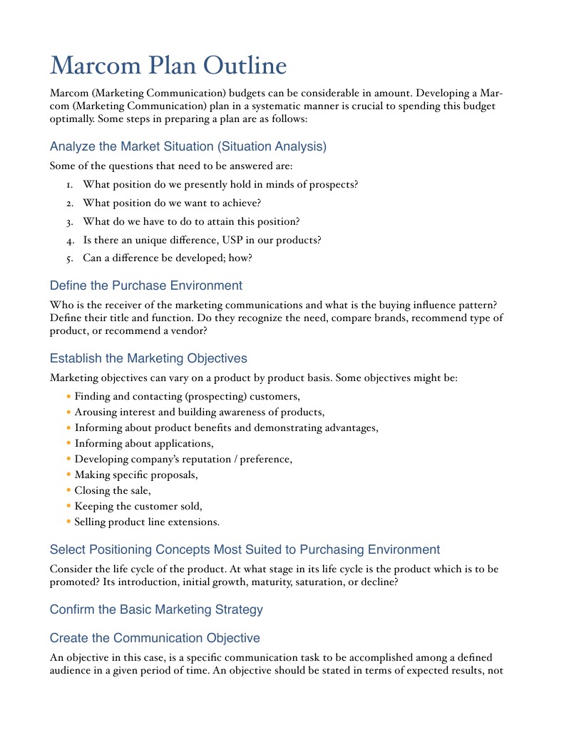 Marcom (Marketing Communication) budgets can be considerable in amount. Leveloping a Mar-