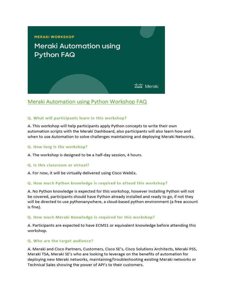 Meraki Automation using Python Workshop FAQ