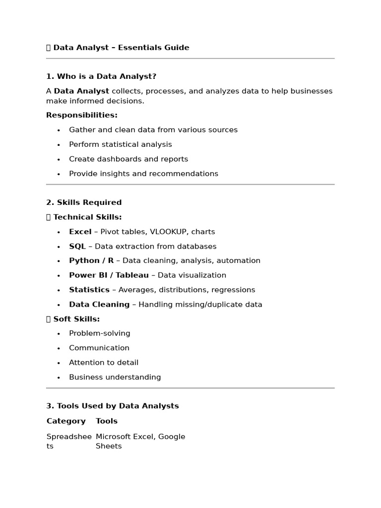 📊 Data Analyst – Essentials Guide