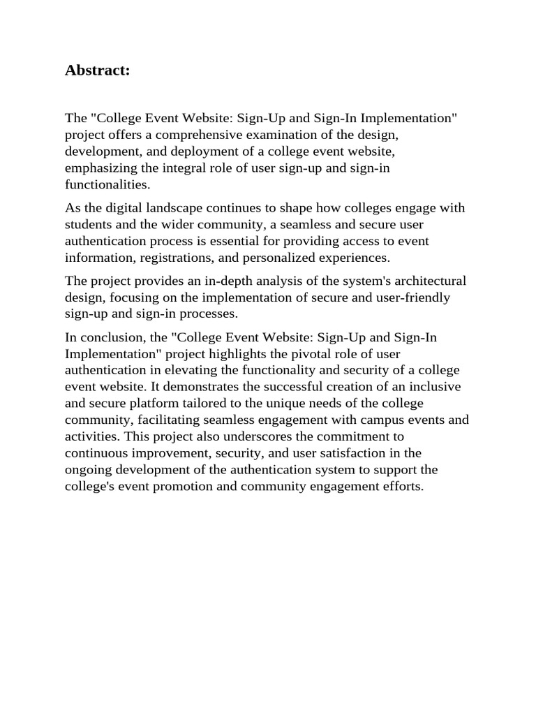 In conclusion, the "College Event Website: Sign-Up and Sign-In