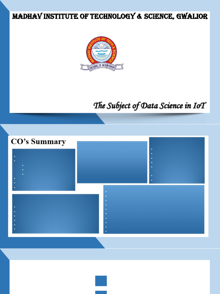 • Data Visualization and Reporting CO4: Data visualization & representation techniques for IoT.