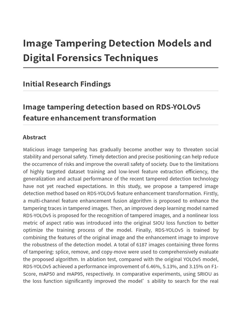 YOLOv5) for tampered image detection. This model incorporates a multi-channel
