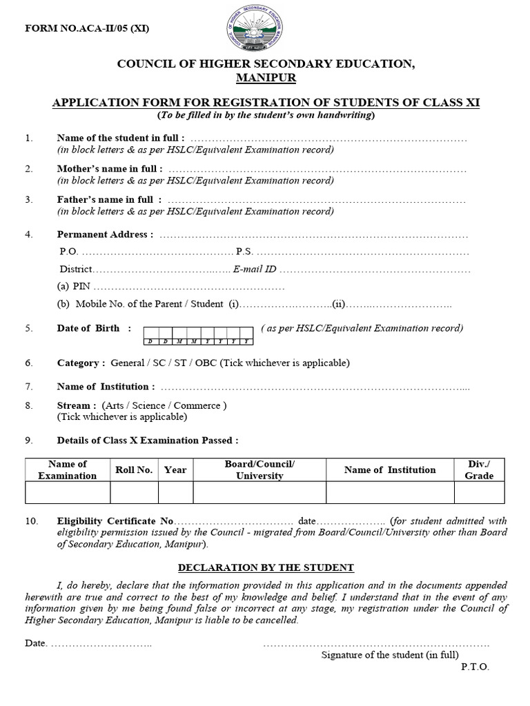 Higher Secondary Education, Manipur along with necessary fee and documents within the last date fixed