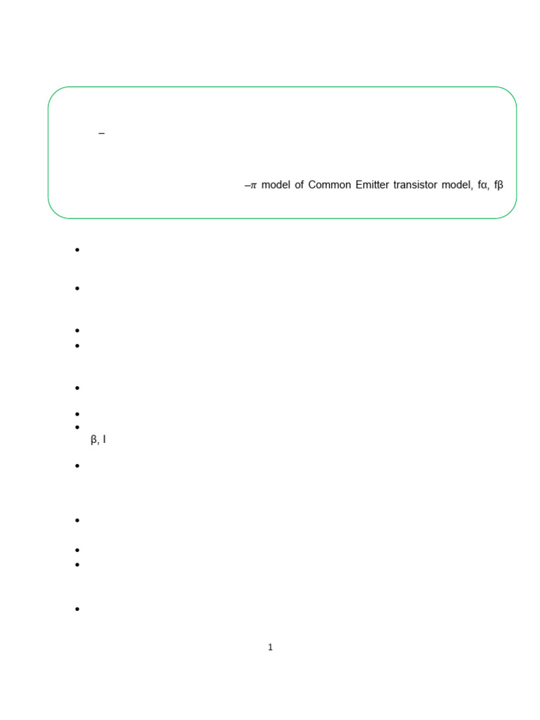 Transistor at High Frequency: Hybrid –𝜋 model of Common Emitter transistor model, fα, fβ