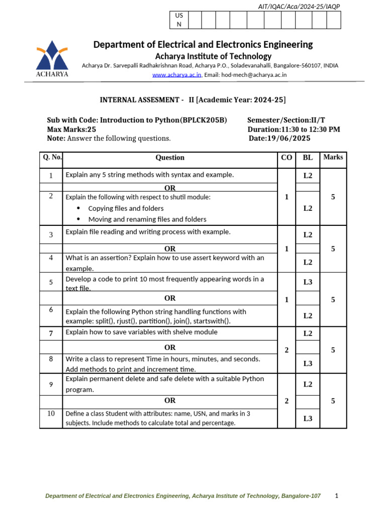 INTERNAL ASSESMENT - II [Academic Year: 2024-25]