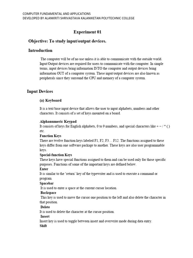 Input/Output devices are required for users to communicate with the computer. In simple