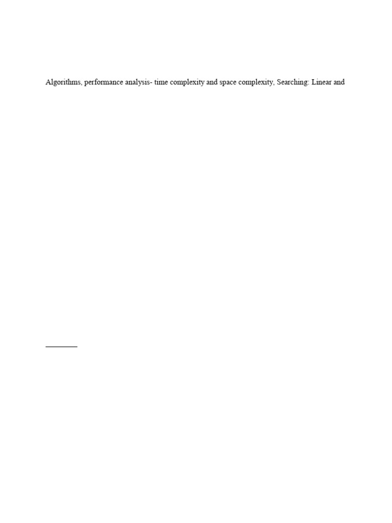 Algorithms, performance analysis‐ time complexity and space complexity, Searching: Linear and