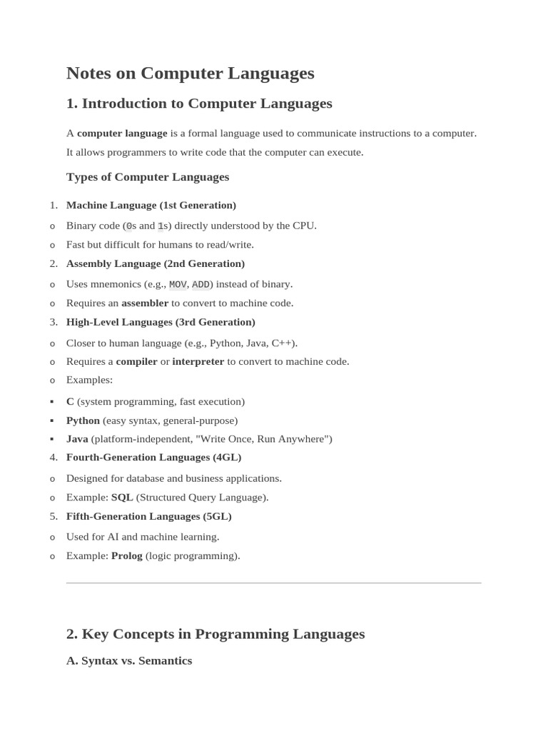 Notes on Computer Languages
