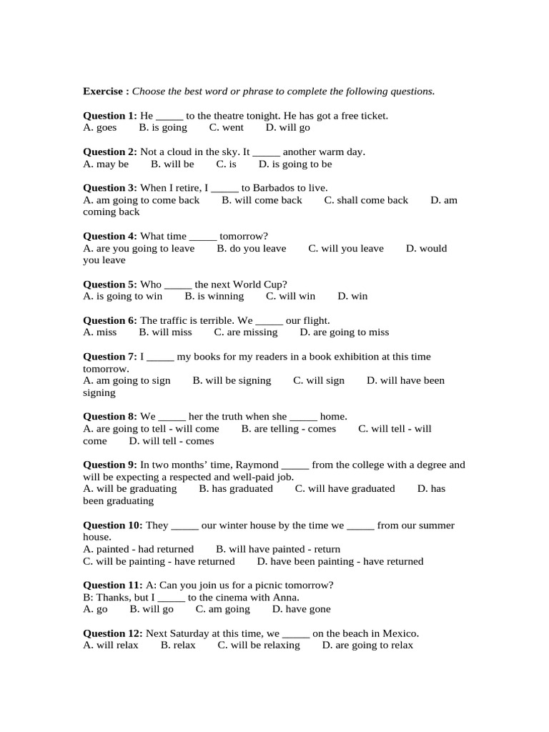 A. are going to tell - will come B. are telling - comes C. will tell - will