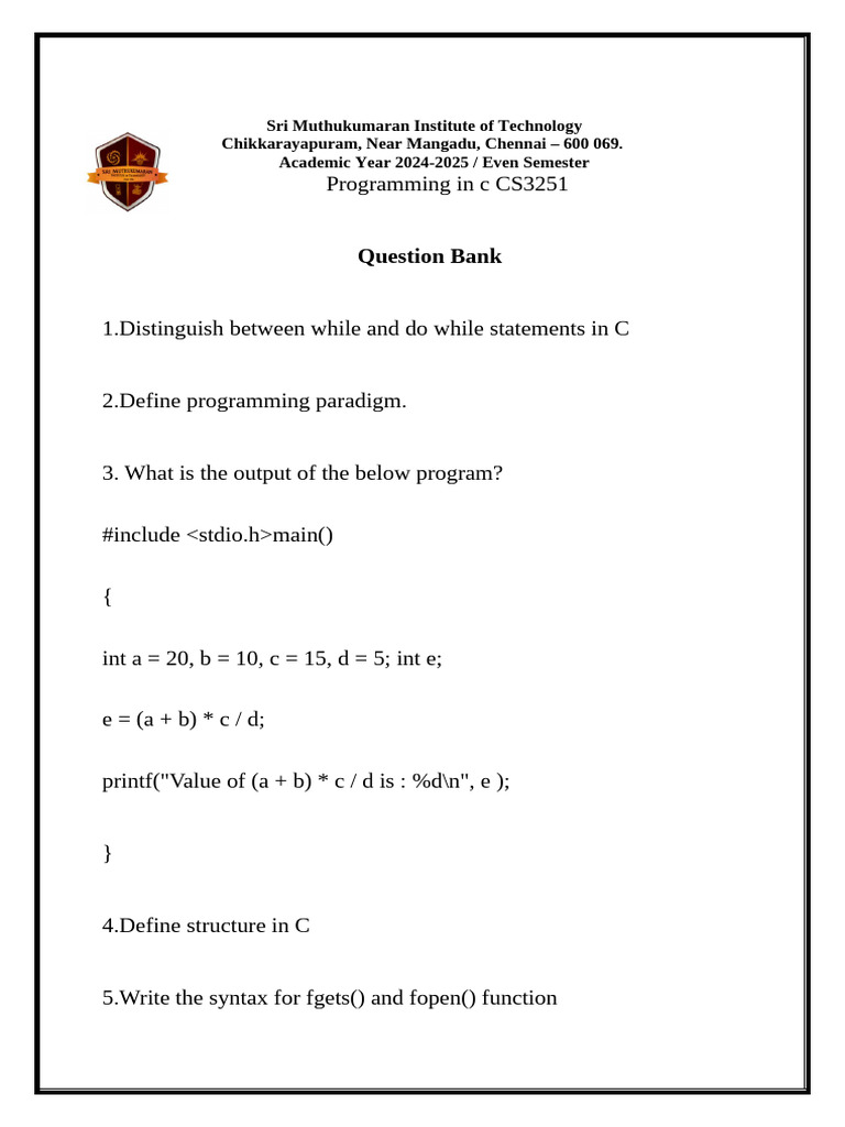 int a = 20, b = 10, c = 15, d = 5; int e;