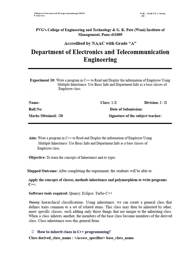 Multiple Inheritance. Use Basic Info and Department Info as a base classes of
