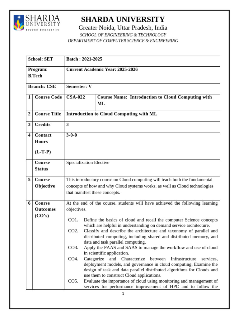 1 Course Code CSA-022 Course Name: Introduction to Cloud Computing with