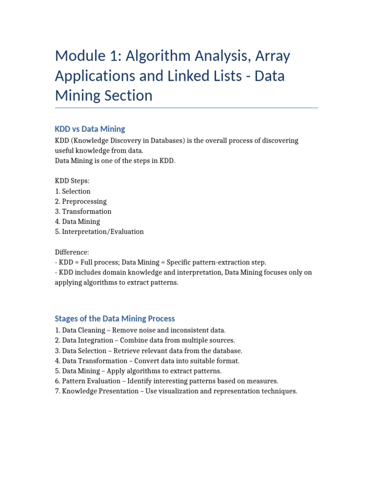 - KDD = Full process; Data Mining = Specific pattern-extraction step.