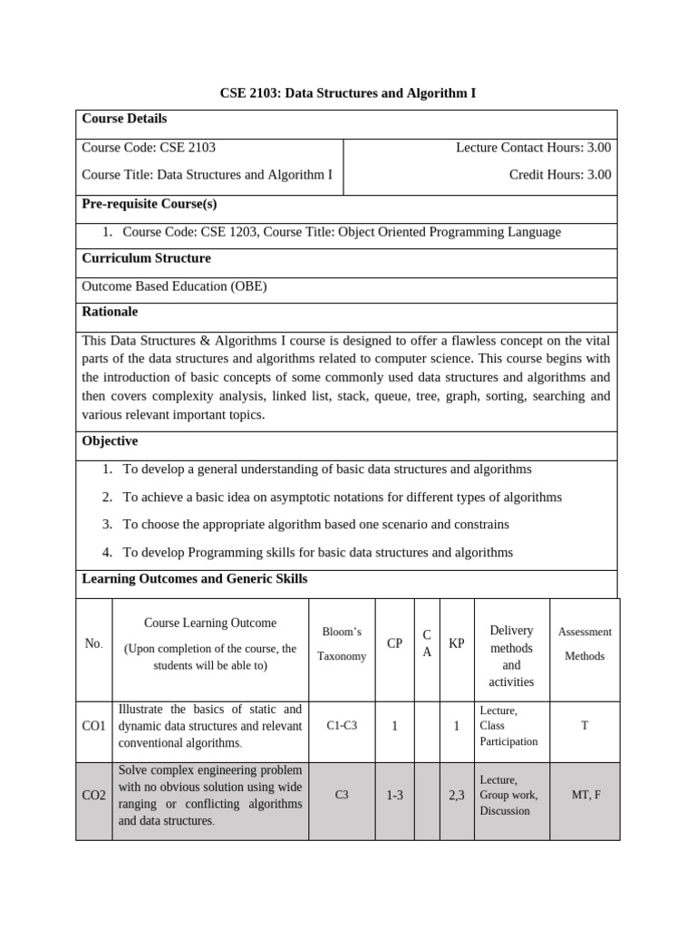 Course Code: CSE 2103 Lecture Contact Hours: 3.00