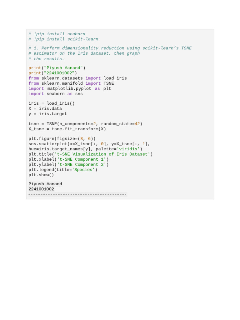 # 1. Perform dimensionality reduction using scikit-learn’s TSNE