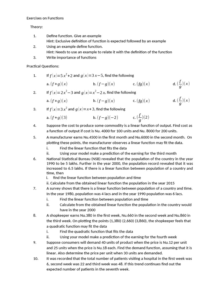 1. If f ( x )=5 x 2 +2 and g ( x )=3 x−5, find the following
