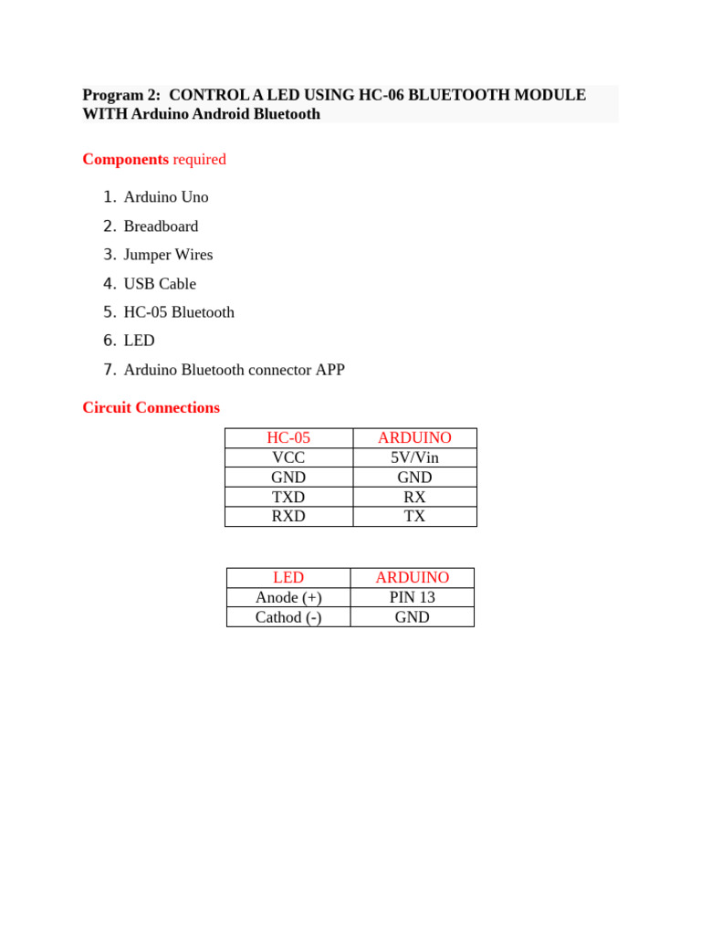 Program 2: CONTROL A LED USING HC-06 BLUETOOTH MODULE