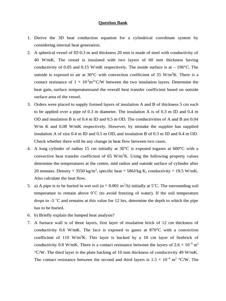 2. A spherical vessel of ID 0.3 m and thickness 20 mm is made of steel with conductivity of