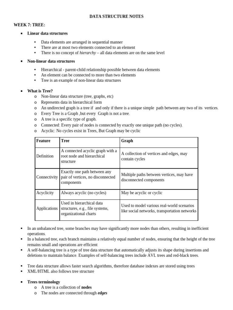 o Connected: Every pair of nodes is connected by exactly one unique path (no cycles).