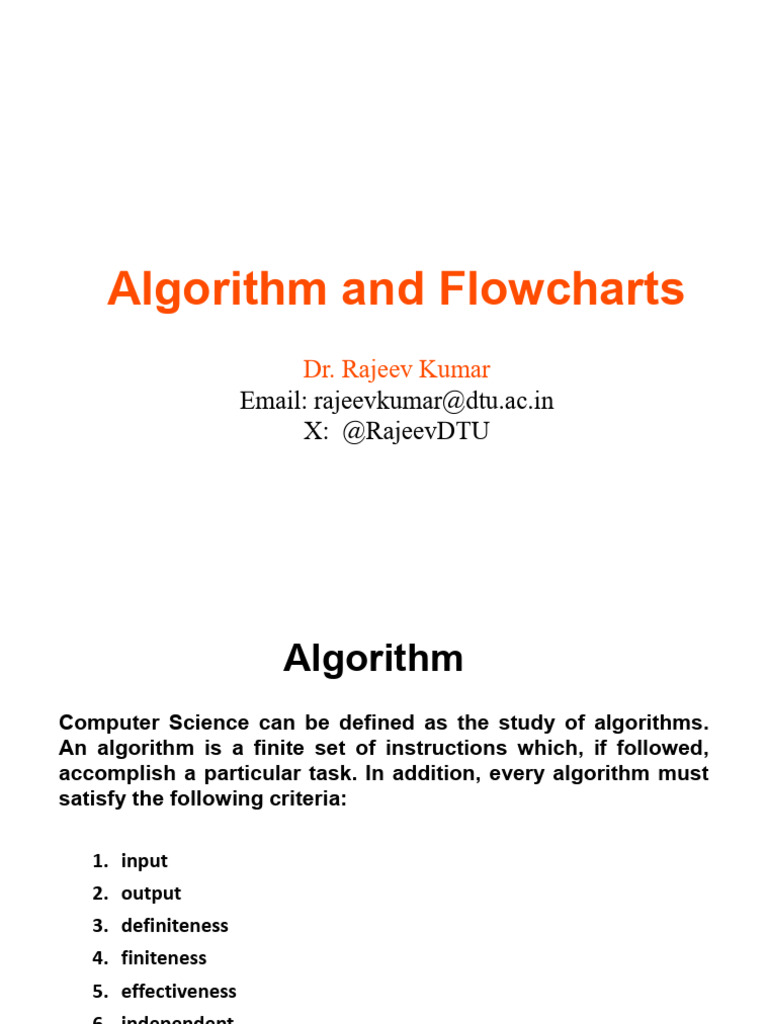 • Algorithms are nothing but sequence of steps for solving problems. So a