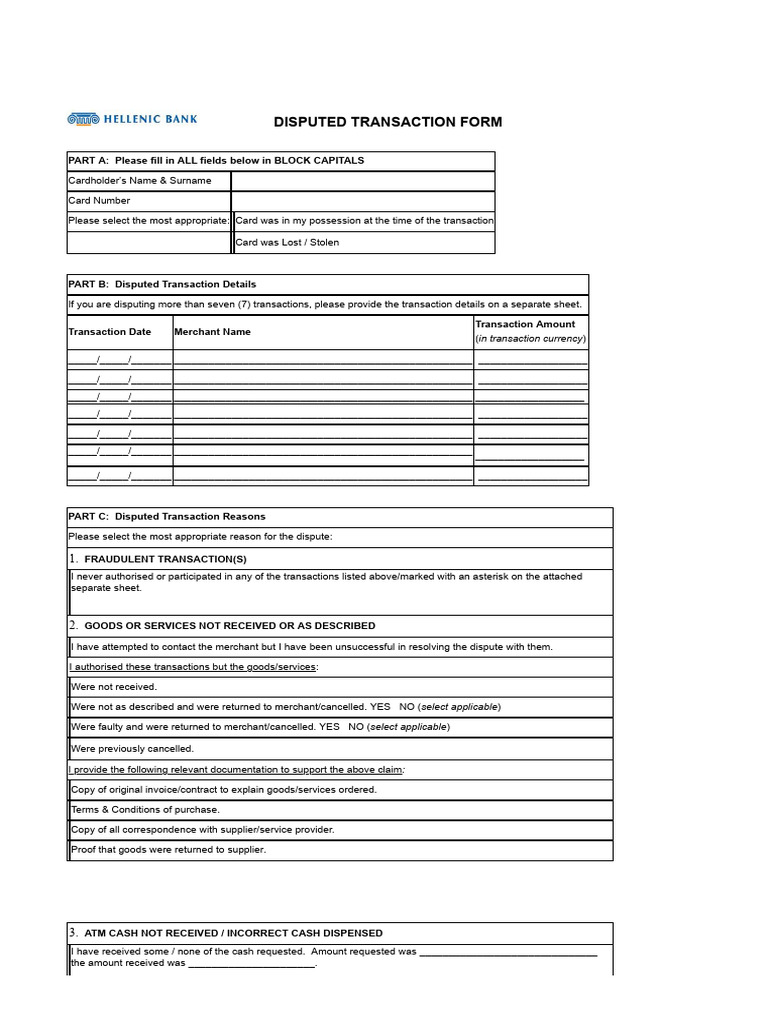DISPUTED TRANSACTION FORM