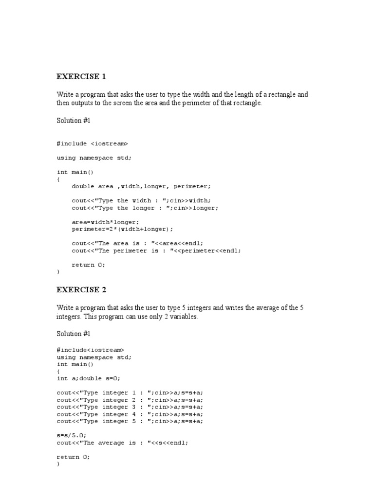 #include <iostream> using namespace std; int main() { double area ,width,longer, perimeter; cout<<"Type the width : ";cin>>width; cout<<"Type the longer : ";cin>>longer; area=width*longer; perimeter=2*(width+longer); cout<<"The area is : "<<area<<endl; cout<<"The perimeter is : "<<perimeter<<endl; return 0; }