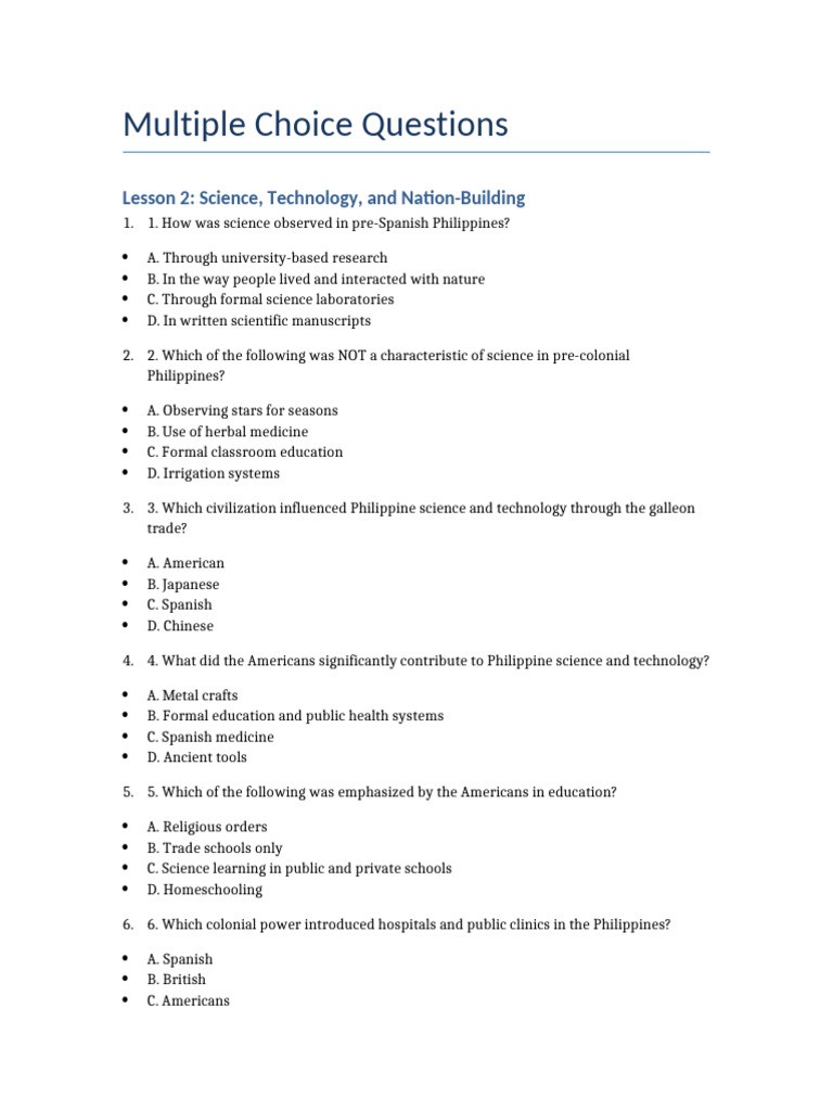 2. 2. Which of the following was NOT a characteristic of science in pre-colonial