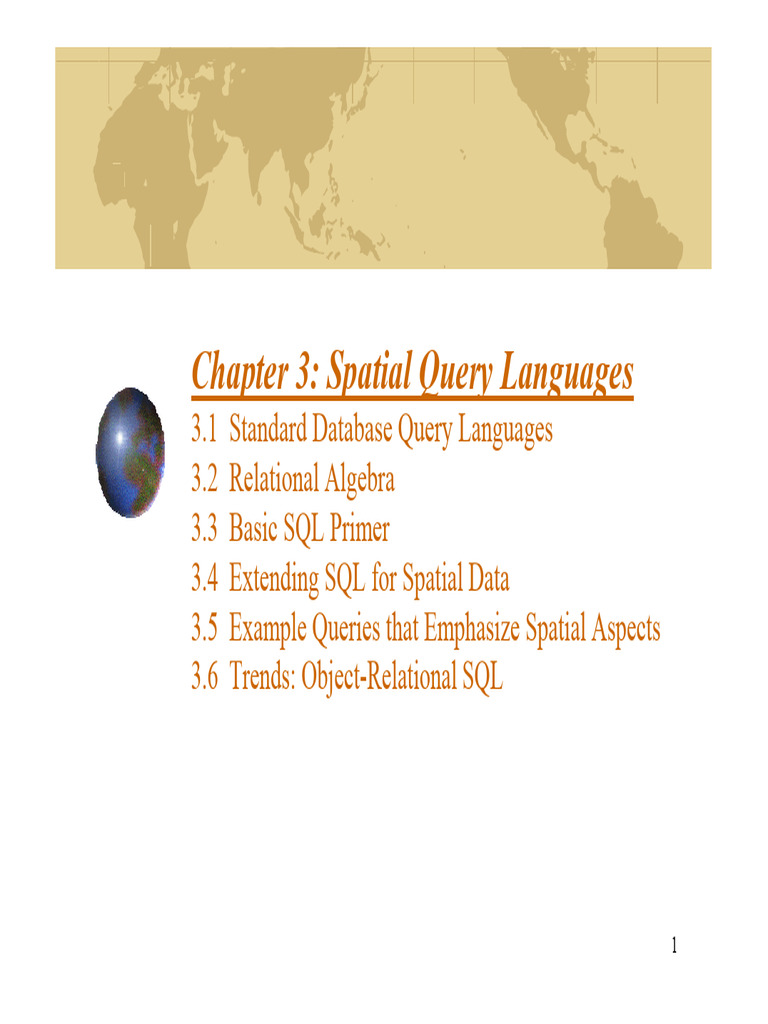of simple GIS software (e.g. Arc/View) and a spatial database.