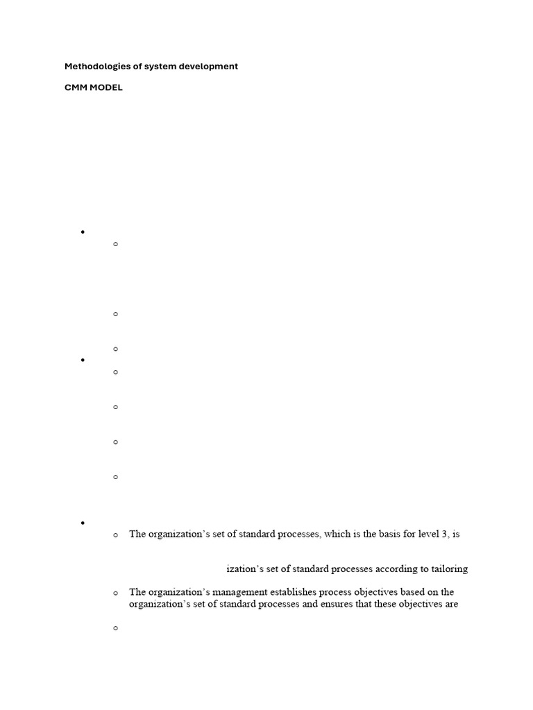 o Processes are usually ad hoc and the organization usually does not provide a