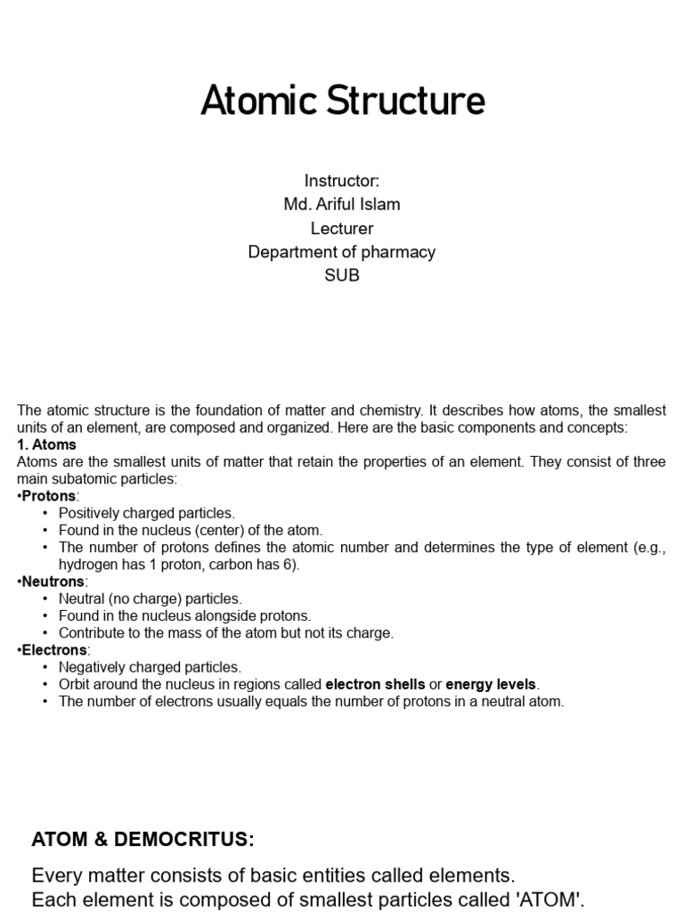 units of an element, are composed and organized. Here are the basic components and concepts: