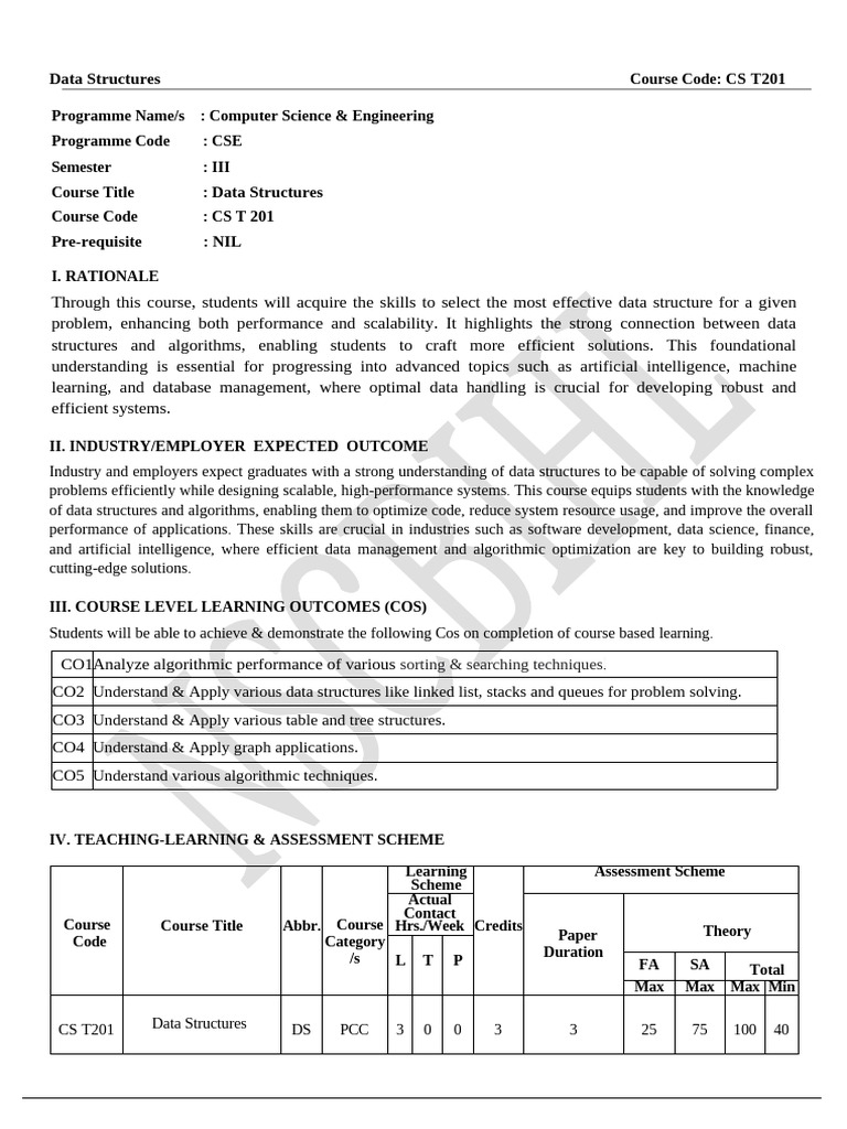 Data Structures Course Code: CS T201