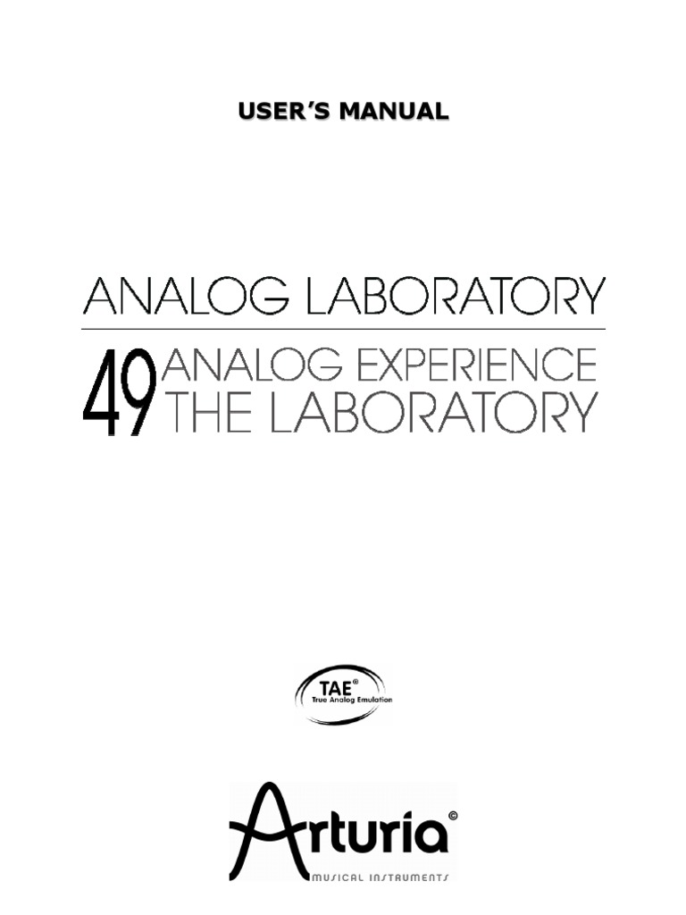 In this package you will find: A CD-ROM containing the Analog Laboratory installer for Mac OS X and Windows XP/Vista/Seven A registration card (credit card format) including the Serial Number and Unlock Code. The Users Manual for the Analog Laboratory software and the Analog Laboratory keyboard. A 49-key Analog Laboratory keyboard (Analog Experience The Laboratory only) An USB cable (Analog Experience The Laboratory only)