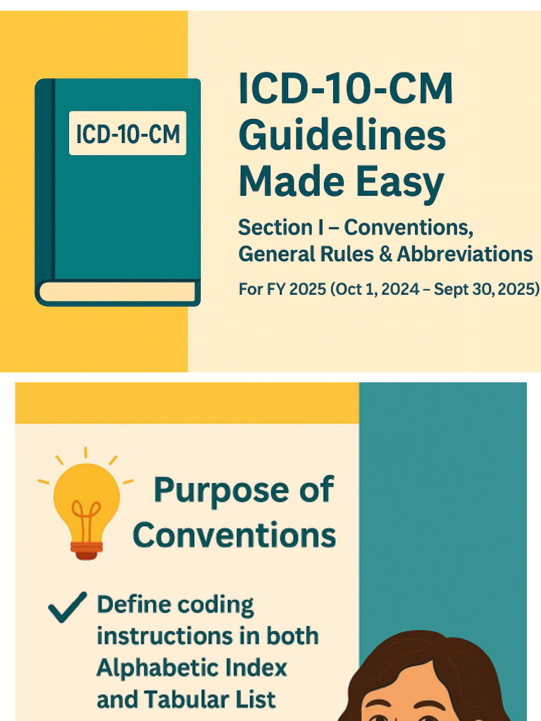 The document provides guidelines for ICD-10-CM coding for FY 2025, emphasizing the importance of conventions and the structure of the code book, which includes an Alphabetic Index and a Tabular List. It explains the use of special characters, the significance of NEC and NOS codes, and the importance of understanding exclusions and punctuation in coding. The guidelines aim to ensure accurate coding to avoid compliance errors and improve documentation quality.