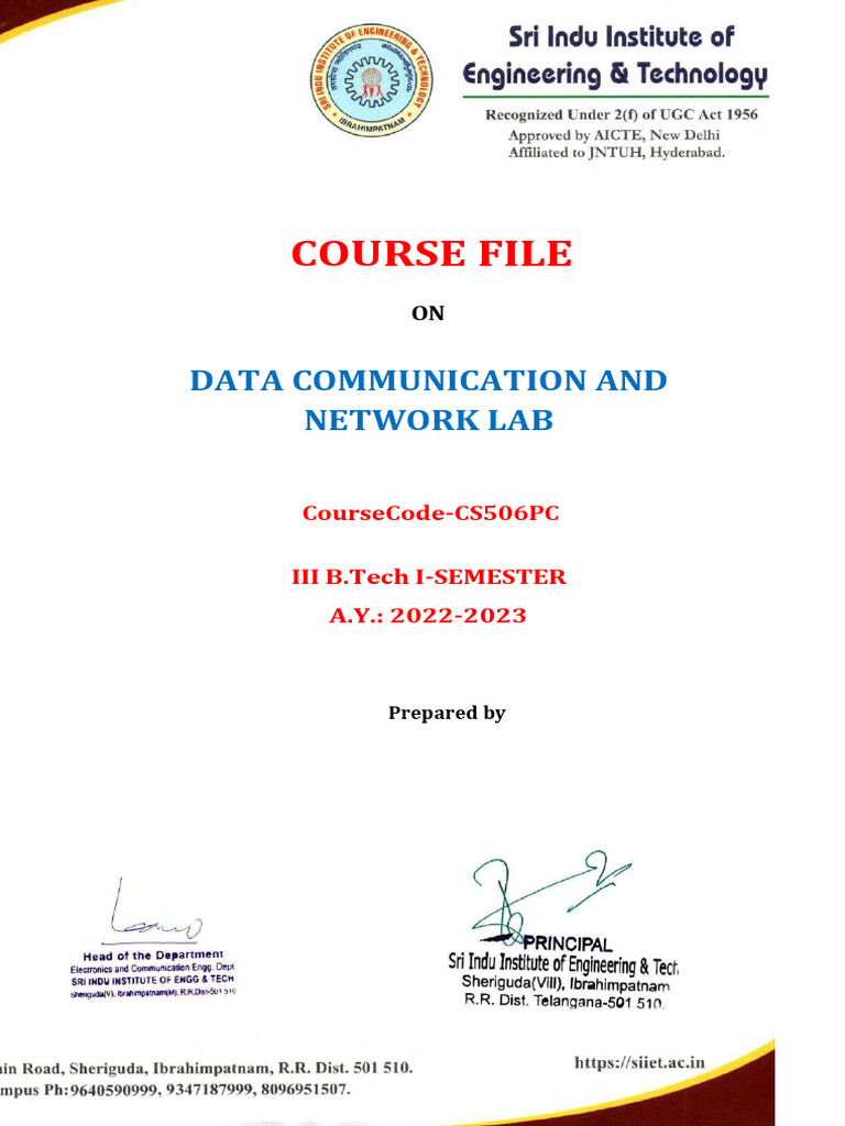 Course Name: DATA COMMUNICATION AND NETWORK LAB