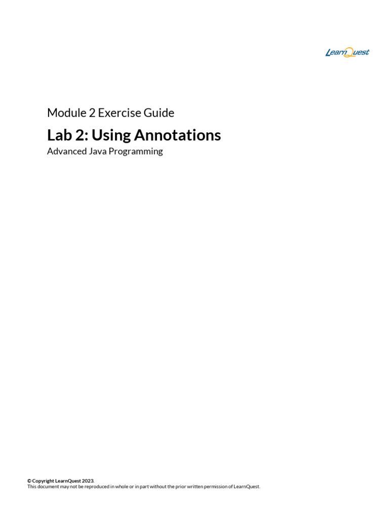 This document may not be reproduced in whole or in part without the prior written permission of LearnQuest.