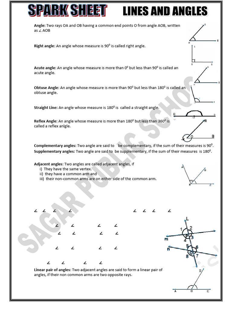 9 Adjacent angles: Two angles are called adjacent angles, if