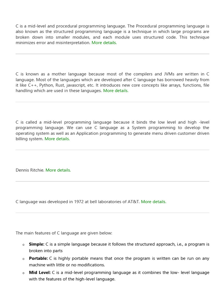 o Simple: C is a simple language because it follows the structured approach, i.e., a program is