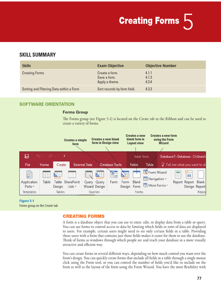 creating forms using a variety of these skills. You also delete a pre-existing form.