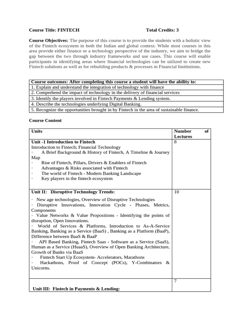 of the Fintech ecosystem in both the Indian and global context. While most courses in this