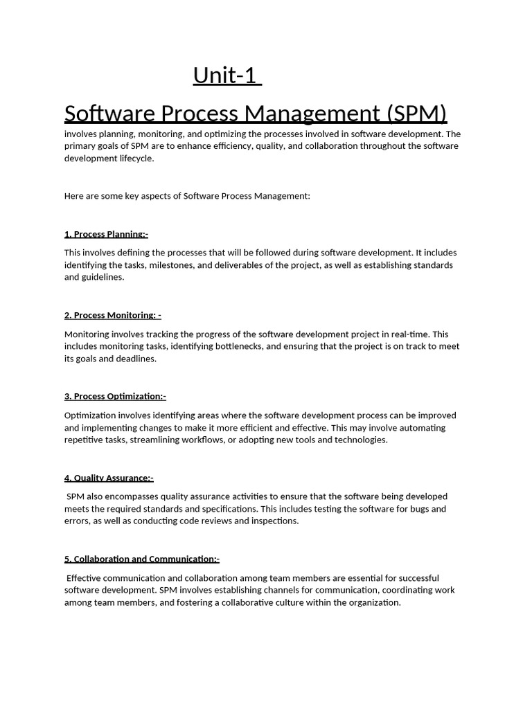 Overall, Software Process Management plays a crucial role in ensuring that software development