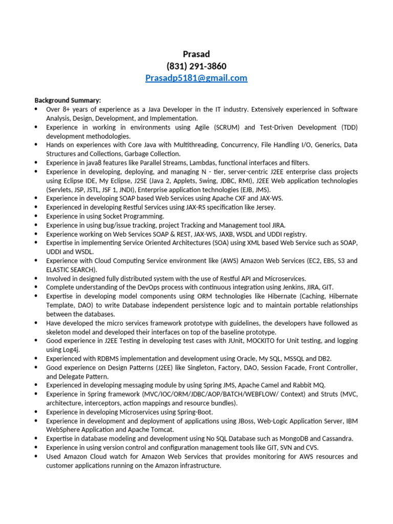 Over 8+ years of experience as a Java Developer in the IT industry. Extensively experienced in Software