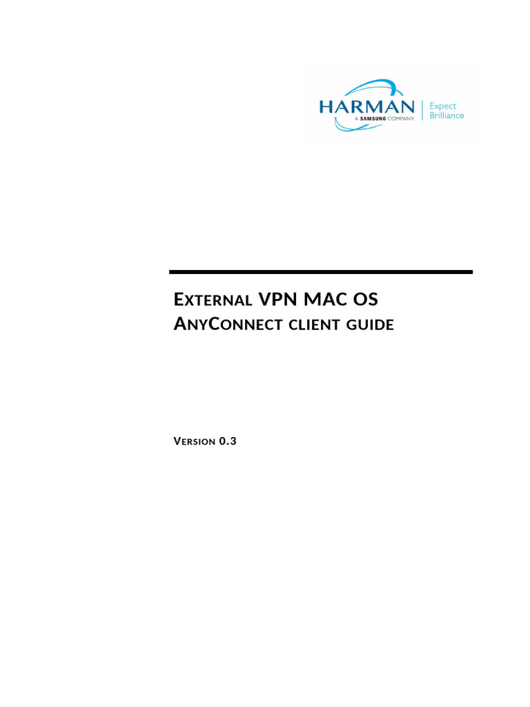 Cisco AnyConnect External VPN service is method of accessing Harman resources while being