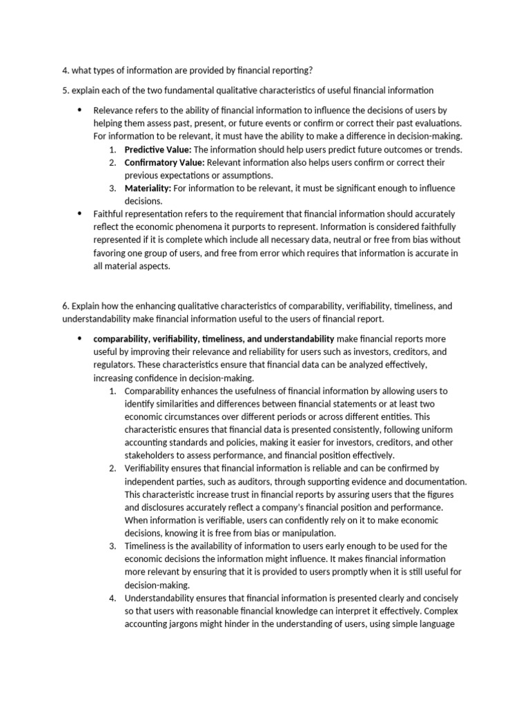 6. Explain how the enhancing qualitative characteristics of comparability, verifiability, timeliness, and