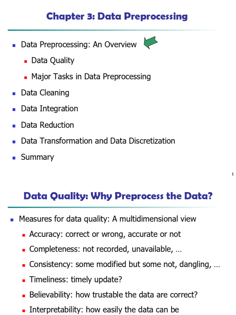 ◼ Data in the Real World Is Dirty: Lots of potentially incorrect data,