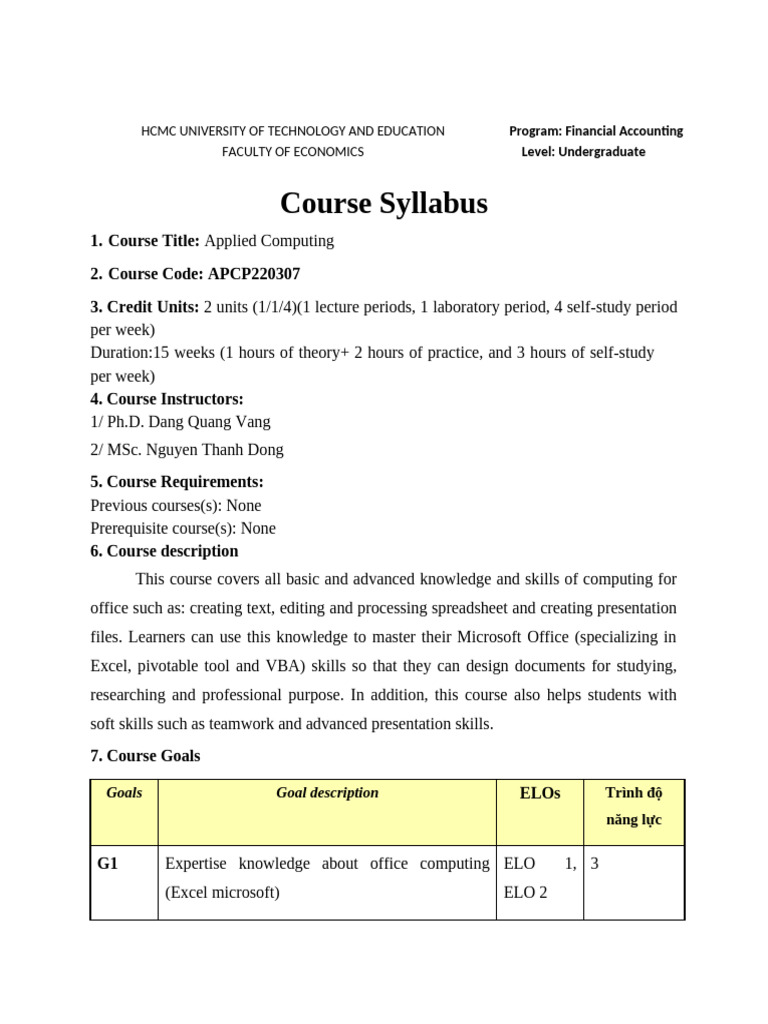 HCMC UNIVERSITY OF TECHNOLOGY AND EDUCATION Program: Financial Accounting