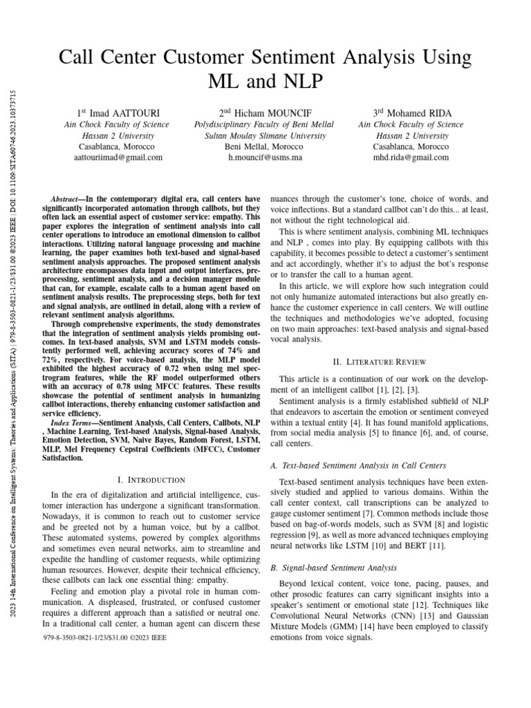callbot interactions, thereby enhancing customer satisfaction and Sentiment analysis is a firmly established subfield of NLP