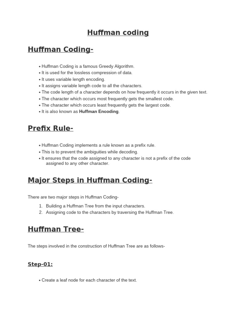 PRACTICE PROBLEM BASED ON HUFFMAN